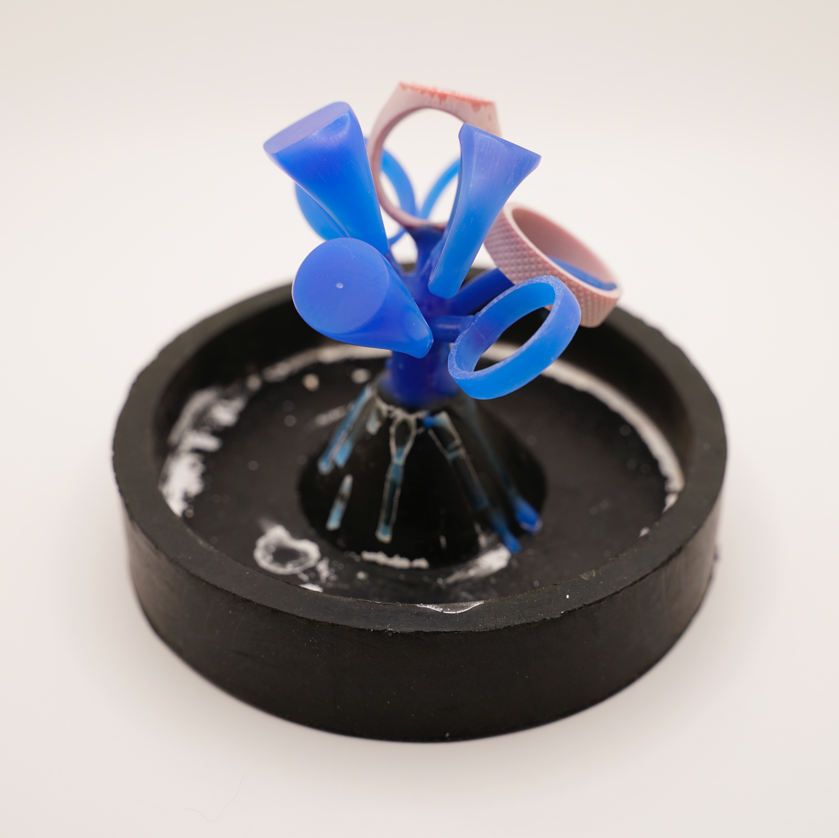 Cast in small batches of 10 or less rings at a time, the mold is quenched after casting in a process that dissolves the plaster away and leaves a beautiful "ring tree". Rings are removed from this tree before undergoing the hours-long process of finishing and polishing.
