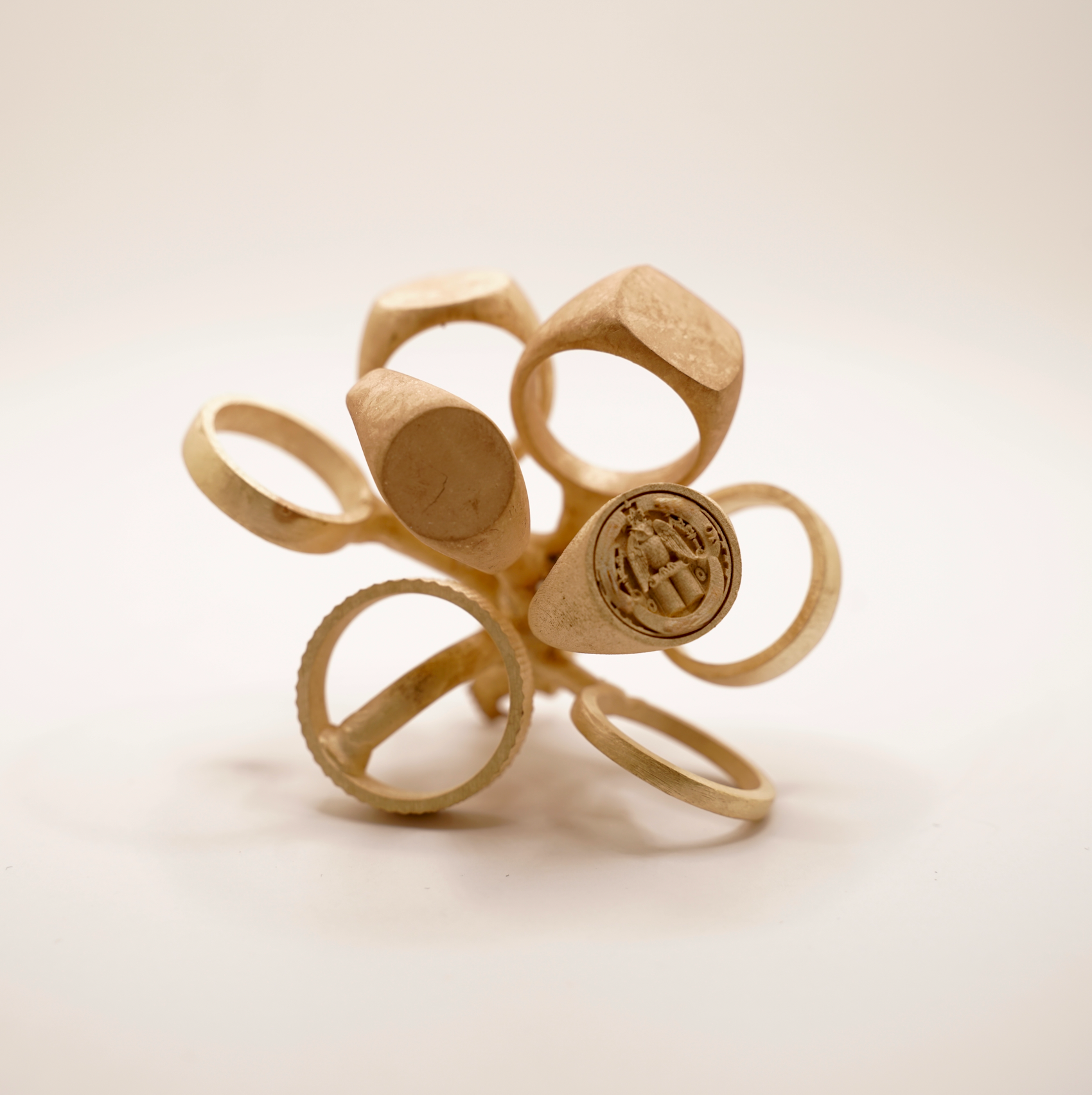 Every ring starts as a wax model and every heirloom signet ring starts as a hand carved wax model. The wax models are perfect replicas of the ring and are used to create a plaster mold in which the gold will be cast.