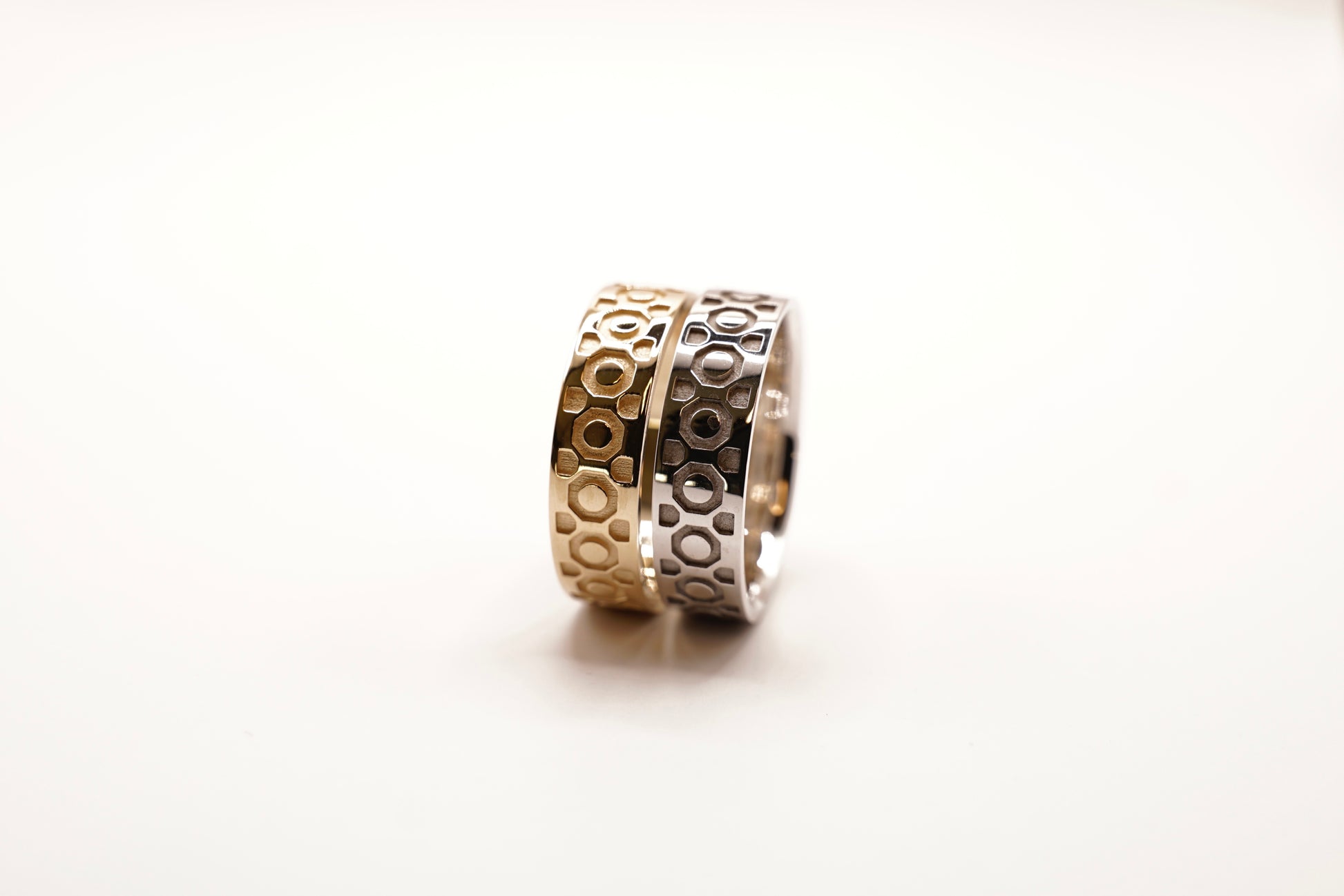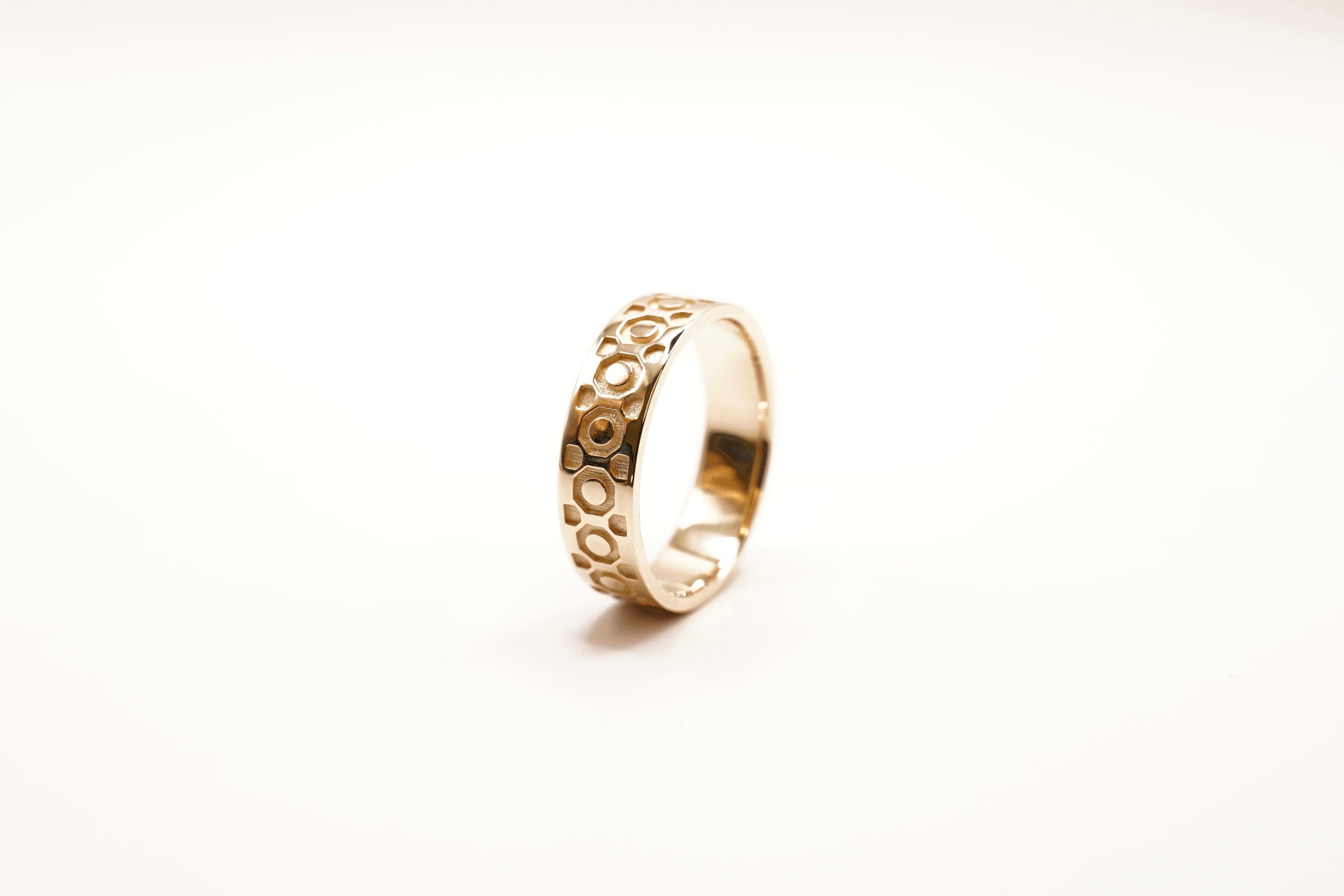 Inspired by the golden brick pattern atop the iconic Carbide and Carbon building. This ring encapsulates the beautiful art deco design of a building that has stood strong in the Chicago skyline for almost 100 years.