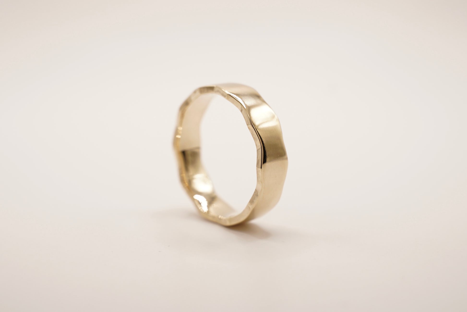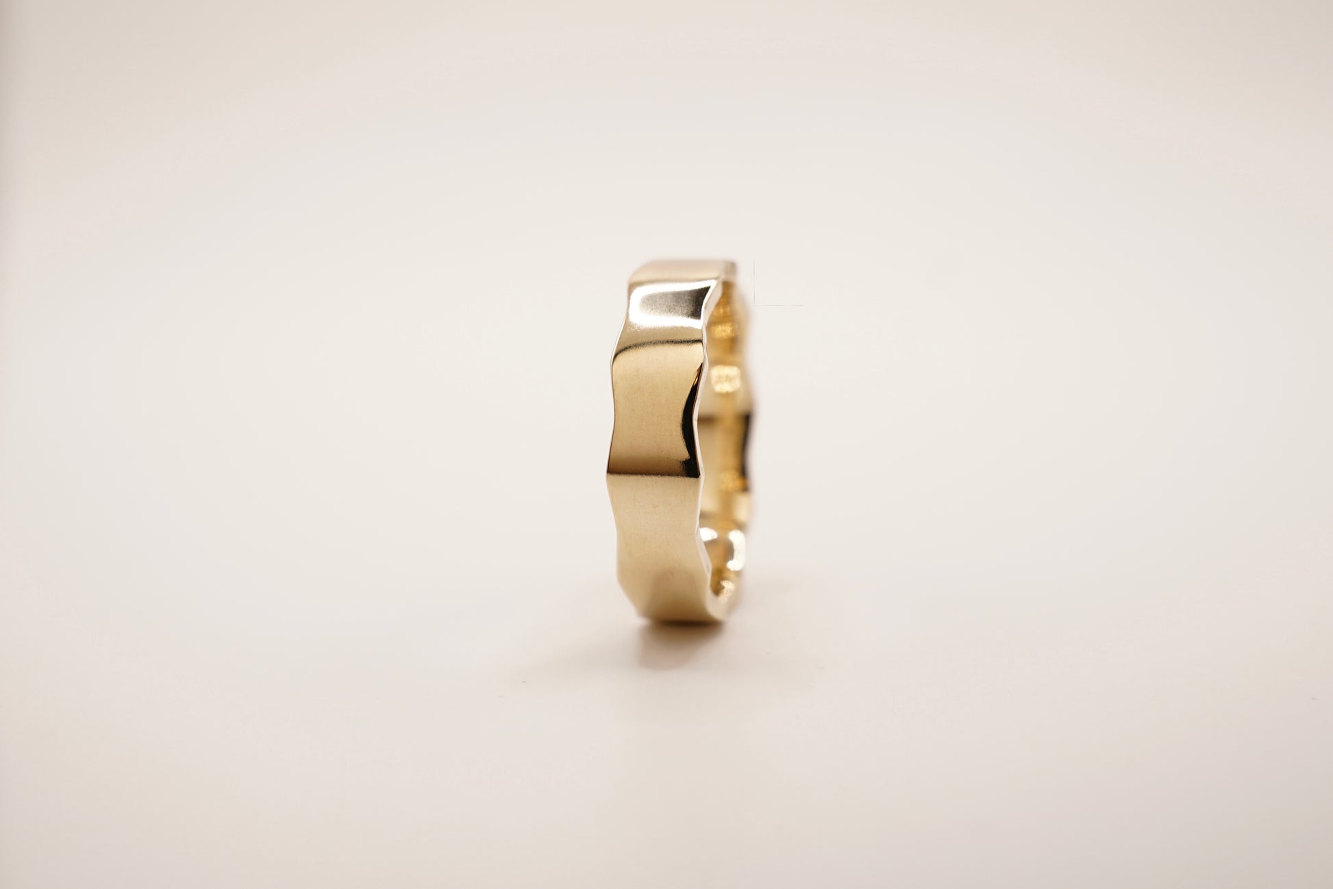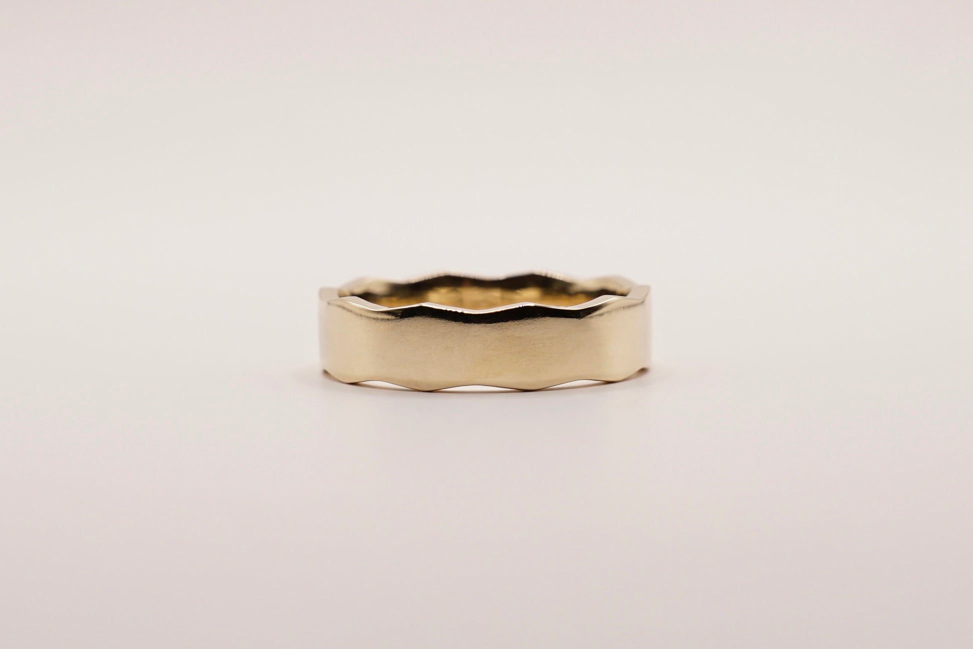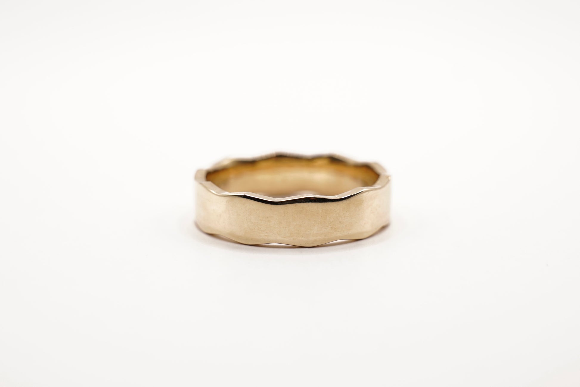 Inspired by The Regis Stack, The Wide Regis captures the same beautiful "zig-zag" edge on a much wider ring. A classic polished finished enhanced by the subtle wavy detail.
