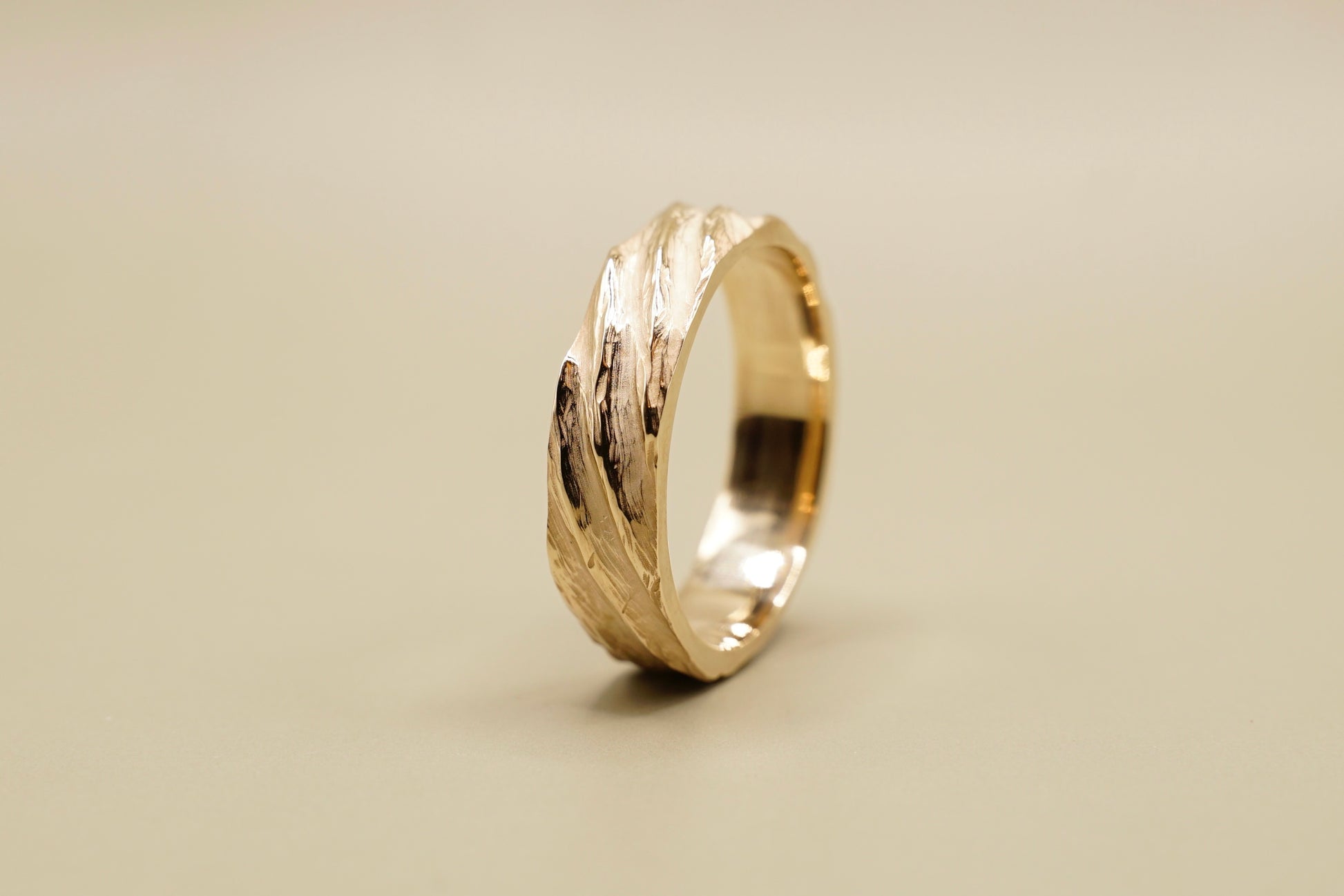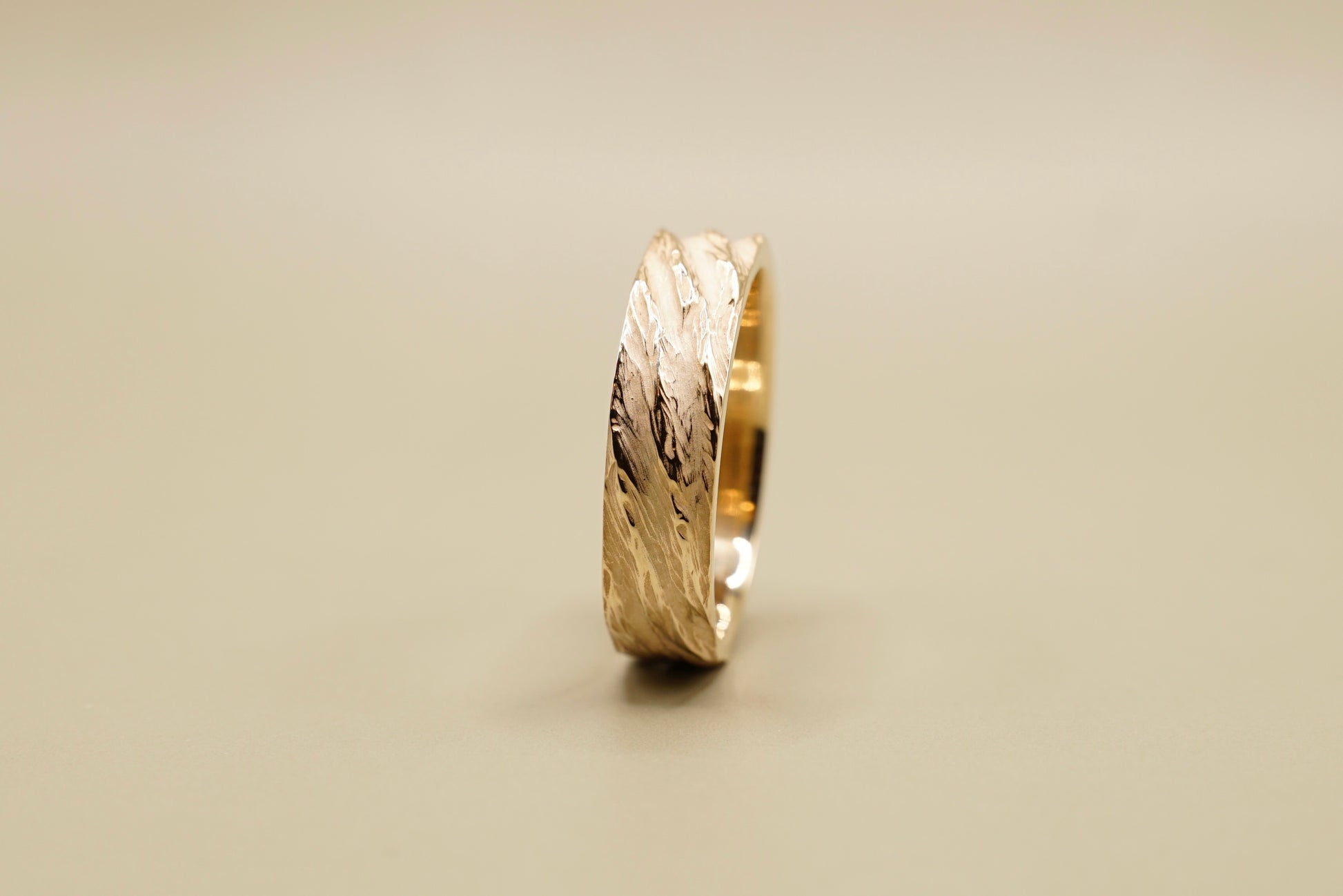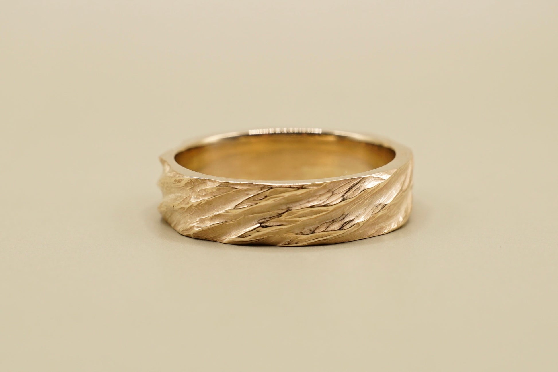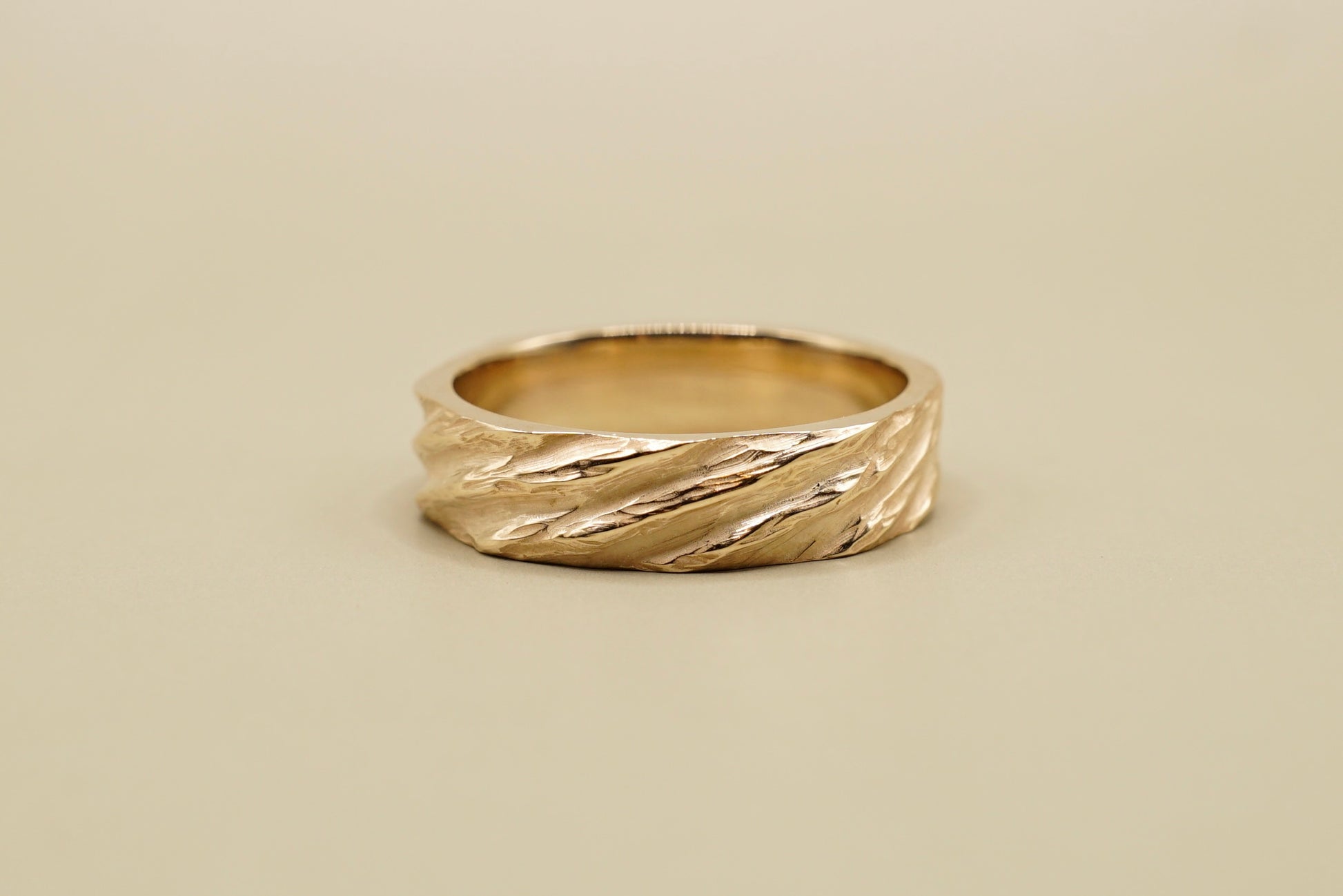 Completely hand carved and unique, every Lake ring will end up a little different due to the painstaking wax carving process behind the ring. Though each ring will be completely unique they will all contain the same effortless beauty of rolling waves and polished gold peaks that give this ring its name. Like Lake Michigan on a moody fall day this ring has many shiny details that easy to get lost in.